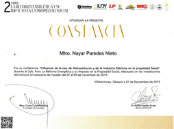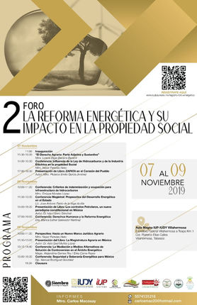 Primer Foro La Reforma Energética y su impacto en la Propiedad Social. CONAPTAC, Asociación de Academias Agrarias, Instituto Universitario Puebla campus Tabasco, Colegio Abogados Agrarios, SIEMBRA.