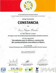 Catedrático en el Curso Especializado: Herramientas para la Defensa y Construcción del constitucionalismo Intercultural en México, en la Materia: Amparo como herramienta de protección de Derechos Humanos.