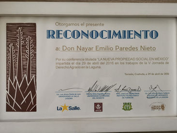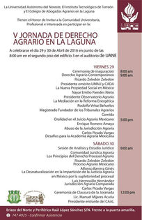 Primer Conversatorio Agrario de la Laguna Ordenamiento Territorial en México, frente al Derecho Agrario auspiciada Colegio de Abogados Agrarios de la Laguna, Facultad de Derecho de la Universidad Autónoma de Coahuila, Asociación de Academias Agrarias, Instituto Tecnológico de Torreón.
