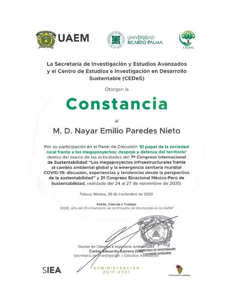 XX Congreso Nacional de Derecho Agrario en México. UNAM, FES Acatlán, Senado de la Republica.