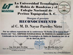 Conferencia Magistral "Perito Topógrafo ante la Prueba Pericial en Juicios Orales, Colegio de Ingenieros Topógrafos A.C..